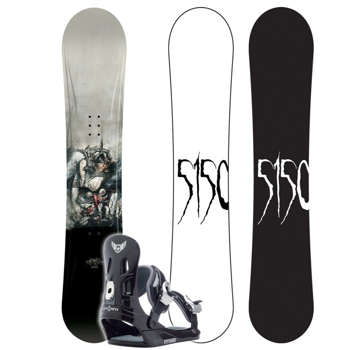 The 5150 Nomad Snowboard is a free ride board with freestyle attitude. Its Directional Shape and Flex for all-mountain performance. The full tip-to-tail wood core gives the 5150 Nomad durability and a lasting flex. This package is an incredible value.