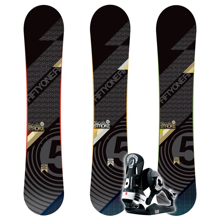 5150 Stroke Snowboard (Wide) + FF2000 Bindings 2009: Get stoked on the 5150 Stroke Snowboard. The progressive sidecut of this monster compensates for its wider waist width, thus allowing you to initiate turns with minimal energy. In other words, this wide ride turns like a mo-fo. Twin-tip construction and centered stance make the Stroke Snowboard dominant in the park and smooth in the pipe. Included are the 5150 FF2000 Bindings, which you can dial at will, right on the hill with the FF2000’s tool-less micro-adjust features. Stable and comfortable, the FF2000 Bindings are a good fit for all riding styles.
