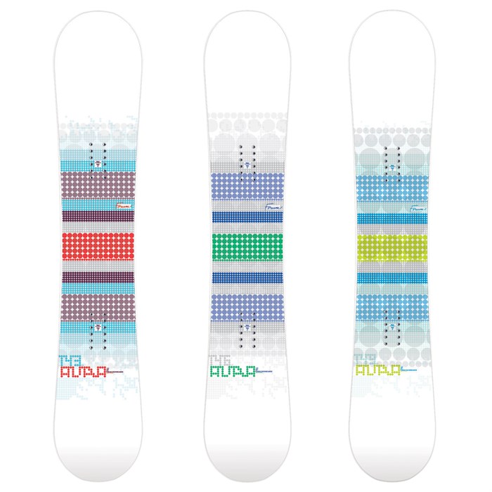 Forum Aura Snowboard: The Forum Aura Snowboard will make you happy to be a snowboarder. Simple, proven ingredients are the recipe to creating this incredibly easy-to-ride snowboard with buttery-soft flex. Available in five sizes, all with the generous sidecut and a super-clean shape, the Forum Aura has brought many female riders from beginner to expert in the span of one season. Be the next in line to get the ride of your life; get a Forum Aura Snowboard this winter.