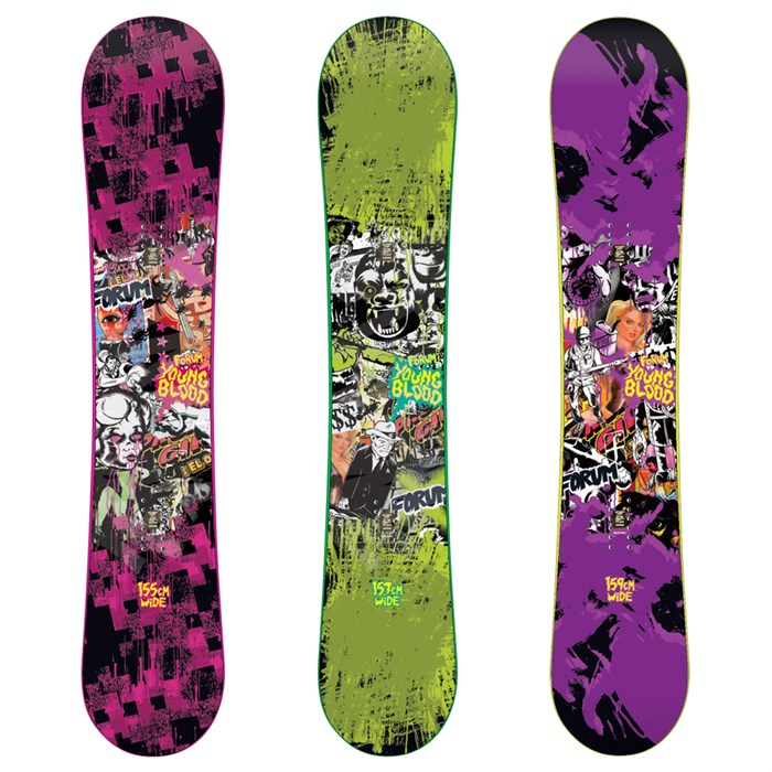 Forum Youngblood Wide Snowboard - Blem 2009: The versatile freestyle board built for anyone with shoe sizes just entering their teens is Forum’s ever-popular Youngblood Snowboard. Smooth-flexing and forgiving Biax glass and a park-tuned GNARTM core, make the Forum Youngblood Snowboard perfect for everything from street rails to park obstacles. The twin shape means maximum control riding regular or switch and the wide shape accommodates larger feet. If you’ve got your sights set on the park’s pro-line, the Forum Youngblood Snowboard will take you there.