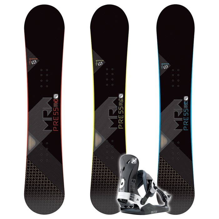Morrow Press Mid-Wide Snowboard + Invasion Bindings 2009: Nose pressing that butter box you’ve been scoping is made easy with the Morrow Press Mid-Wide Snowboard. This lightweight twin-tip lets you rule the park, while its durable sidewall construction still allows you to hit some big off-piste lines. Paired up with the bombproof Morrow Invasion Bindings, this setup gives you the power to mount a total mountain siege with your slightly larger feet.