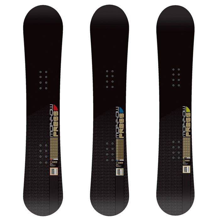 Alert the press—the new park ruler has arrived. The 2008 Morrow Press Snowboard is perfect for buttering and nose presses, and just about anything else the mountain has to offer. Its ABS Sidewall construction is strong and long-lasting, while the versatile directional shape lets you get both freestyle and freeride action. Press your luck, repress your anxiety, suppress your excitement, pressure your style, impress your crew, bench-press 250, press some cider, press up against her—whatever you Press, just make sure you do it with the fully loaded all-mountain 2008 Morrow Press Snowboard.