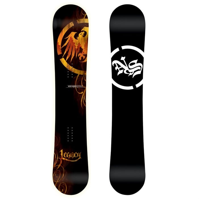 Never Summer Legacy Snowboard - Used 2008: The Never Summer Legacy Snowboard’s extra width accommodates your size 11+ boots without dragging your toes through the snow or sacrificing agility. The Vario Power Grip sidecut increases edge hold from binding-to-binding, which gives you added control and response. The Carbon VXM system rocks a stiff torsional flex with a softer tip and tail that’s forgiving in the pow, responsive on the groomers, and stable through the chutes. Never Summer gave the Legacy a directional tip for your freestyle riding, a Durasurf sintered 4501 base to keep your speed through the gnar, and the RDS 3 damping system to reduce chatter on hard-pack.