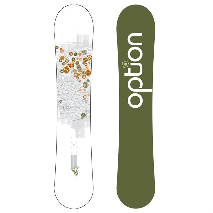 Classic Entry Level All Mountain Performance The Option GT series is for the rider who wants to learn to ride any terrain in all conditions with little resistance. The GT helps riders learn to link turns easily with its mellow sidecut and soft flex pattern. The GT is so popular Option added a wide version. Boot size 10-13 Men’s US