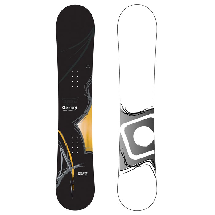 Option Supercap Wide Snowboard 2006 – The Go Anywhere Ride The Option SuperCap Wide is the big brother of the SuperCap series. With all the same attributes as the SuperCap, Option built this board in a wide series to accommodate bigger feet. Don’t let the Wide title fool you, it is still a forgiving ride for all terrain and snow conditions. Boot Size Men’s U.S. 10 to 13