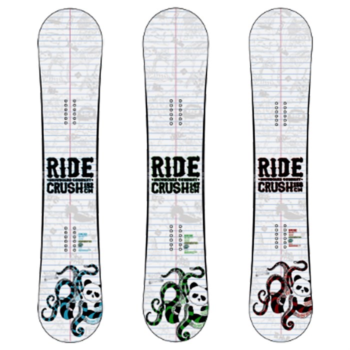 Ride Crush Rocker Snowboard 2010: At least your snowboard will never break your heart. The Ride Crush is packed with attractive qualities that you just can’t help but fall for. New LowRize rocker technology with RadialBlendz sidecut is combined with 85A Slimewalls for a hook-free, super smooth Ride. Featuring the lightweight style of Membrain and toughness of CleaveEdge, you can show her off to your friends or run with her through the park, grab her tail or even grind her over a rail.