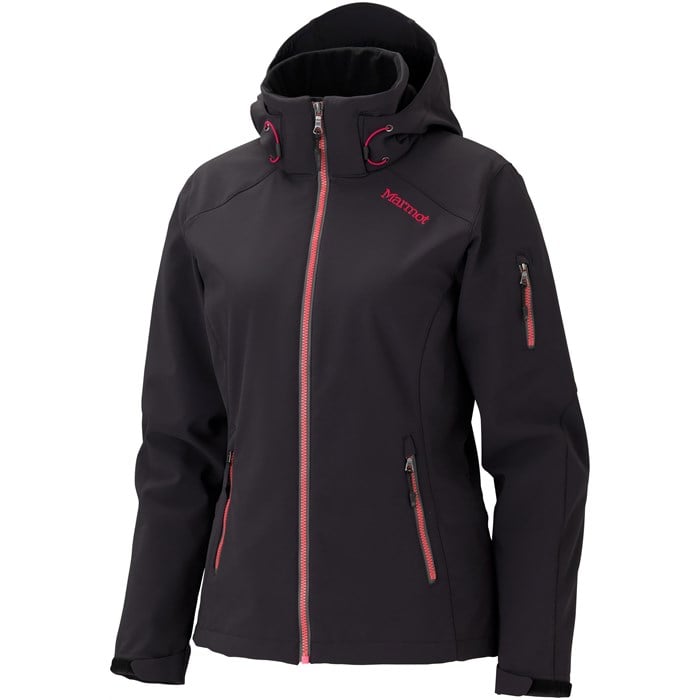 Marmot Bella Jacket - Women's: With the Marmot Bella Jacket, wind, water, and boredom don’t stand a chance against this pliable, high-tech armor. Stretchable M1 Softshell is fashioned into a snowsport fundamental, part of Marmot’s Coombs Sidecountry Collection for powder-hounds and steep-junkies. With a zip-off storm hood and powder skirt, and pockets for everything from sunglasses to cold hands, this jacket supplies everything except your need for speed.