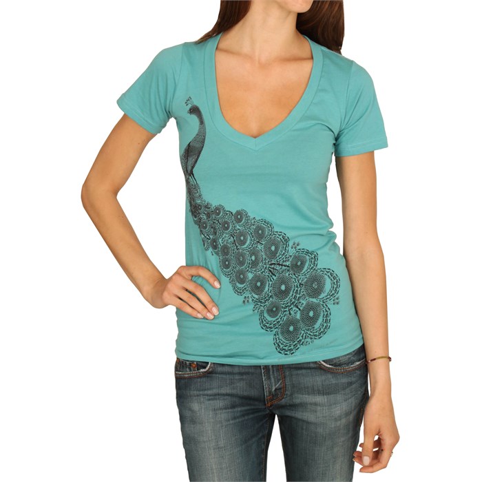 Element Gem Peacock V Neck T Shirt – Women’s: The majesty and wonder of the peacock lives on forever in the Element Gem Peacock V-neck Shirt.