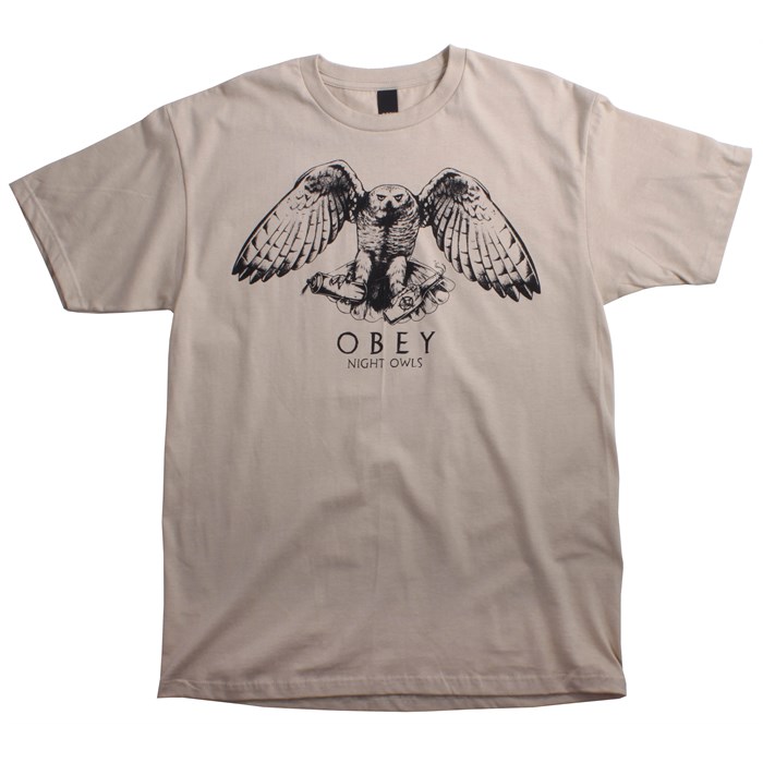 Obey Clothing Night Owls T Shirt: This isn’t a Harry Potter magic owl and we aren’t at Hogwarts. The Obey Clothing Night Owls T Shirt rocks an owl that shows he means business by carrying his can of spray paint and bottle of Obey Clothing liquor. He is definitely up to no good.