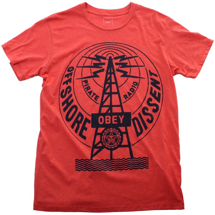 Obey Clothing Pirate Radio T Shirt: For those of you who’ve seen the movie you don’t need a reason to buy the Obey Pirate Radio T Shirt: for those of you who haven’t – the Obey Pirate Radio T Shirt pays respect to the anti-establishment that refused to conform. If you’re ready to do the same or simply want to pay your respects, the Obey Pirate Radio T Shirt is here for the taking.