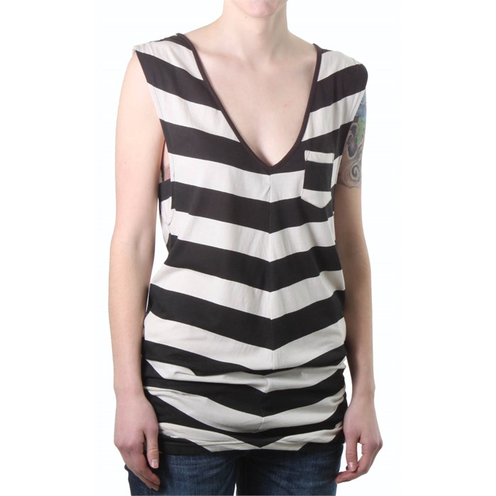 Billabong Fader Top - Women's: The sleeveless v-neck knit Billabong Fader Top adds spice to your wardrobe with front pleating detail and a scalloped bottom hem, creating an entirely original look.