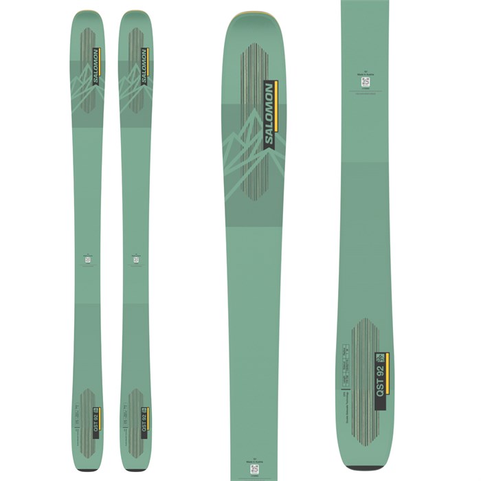 Once you've got a taste of the Salomon QST 92 Skis + Marker Squire 11 Bindings, your days on the mountain will never be the same. From East Coast groomers to Northwest volcanoes, these skis can handle any type of terrain with style, fun, and flair. They're made with the highest quality materials available and shaped for smooth edge transfer, tons of pop, and lightweight pivotability.