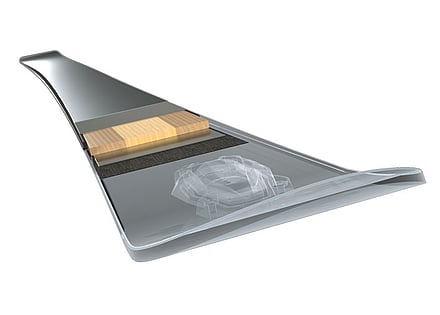 UVO Technology – UVO (Ultimate Vibration Object) technology uses a small device attached near the tip of the ski to eliminate vibrations encountered at higher speeds and on uneven snow surfaces. It's the first application of this type to effectively counter vibration originating from any direction, and was first used in Völkl race skis.