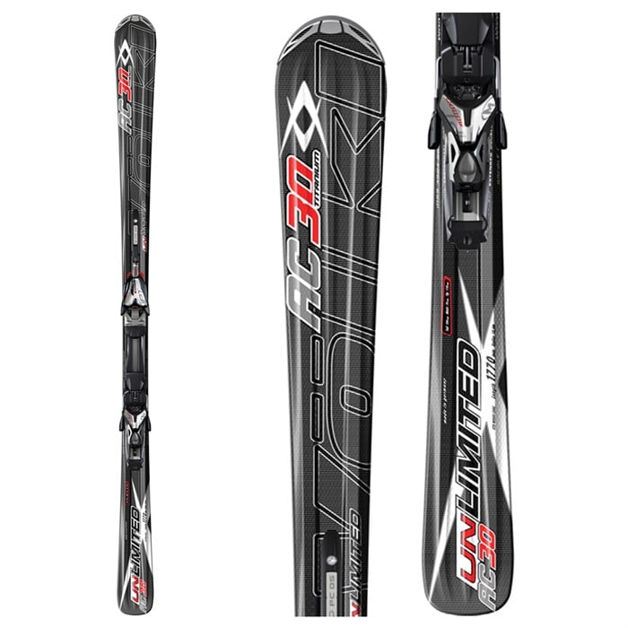 Volkl AC30 Titanium Skis + Bindings - Used 2008: Don’t limit your possibilities. The 2008 Volkl Unlimited AC30 Titanium ski is for the advanced-expert skier who does it all, everywhere on the mountain. With two sheets of titanium, the stable Unlimited AC30 Titanium plows through the firmest snow and toughest crud with killer edge grip. The same design at last year’s model, the 2008 Volkl Unlimited AC30 brings back all the tried-and-true features of the 2007 AC30 with a sweet new graphic to keep your skiing nice and fresh, even when the powder’s not. Teaming up with the techy Motion iPT system, the Volkl Unlimited AC30 Titanium Soft is simply the best all-mountain, all-terrain, all-conditions ski to have in your quiver at all times.