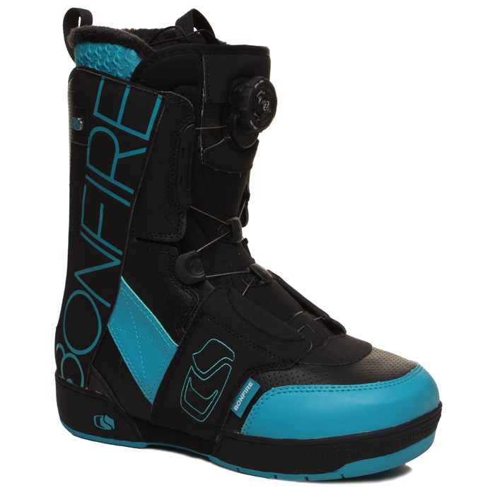 Bonfire Geo Boa Snowboard Boots - Women's - Demo 2012: Go ahead, say it, the Bonfire Geo Boa Snowboard Boots are cute. Real cute. And once you get past the good looks and the real gems of the Geo Boa Snowboard Boots appear. First, the Coiler Boa lacing gets you in and out with only the flick of a wrist. Then, the soft fury lining that keeps your toes oh-so warm make you want to snowboard forever. Finally the comfort and the sweet graphics seal the deal and make the Bonfire Geo Boa Snowboard Boots pop!