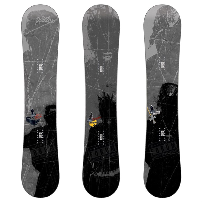 Forum Raider Snowboard: Riders with bigger feet just need a bit more board, not a boat. The Forum Raider Snowboard meets the needs of the size 11+ foot in a very agile, all-mountain directional, with no extra bulk. Forum’s FullyGNARTM core and Quadrax glass laminates are the keys to this easy-turning ride. The tip-to-tail wood laminates compliment the four-way glass matrix for consistent flex through the arc of each turn. The Fluid Base is wax-impregnated for max speed and minimum maintenance.