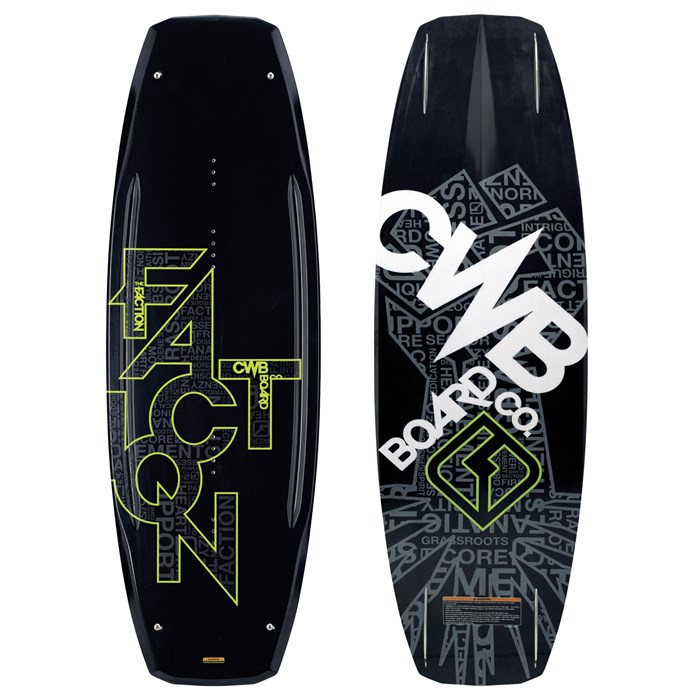 Fast board, clean bottom, biggest center spine, slider friendly, the CWB Faction Wakeboard will push your skills to the next level. Continuous rocker design means you’ll move faster through the water, launching you further across the wake.
