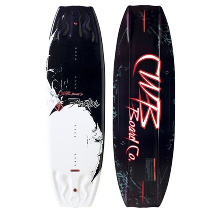 It is all about the ride. Another sled ride to the podium, the 2006 Factor is the best of both worlds. Based off the very successful Tattoo, the Factor is a shape that can give both the beginner a great platform to hone their skills as well as the vet who wants to learn the next shoreline pleasing trick. An extremely predictable, consistent and performance based shape. CWB witnessed title holding national champion competitors as well as true aspiring beginners ride the Factor and have better sessions every time they hit the water. Large molded base fins deliver the opportunity to ride with or without a center fin. This gives the rider a true snowboard feel.
