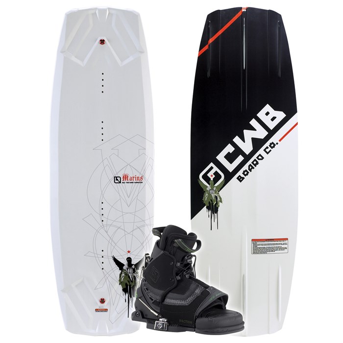 The CWB Marius wakeboard proves that width is the best thing to hit wakeboarding, if it’s done right. Lay your eyes on the CWB Marius and the first thing you will see is that it is the widest board ever. This extra width means mucho surface area, which translates into lift, soft landings and great room for stickers. Wide boards are historically harder to edge, which is why most on the market are short wide boards. The brilliant minds at CWB developed V-Tech to enable the first fully functioning wide, long board on the market. This deep V means rocker at the corner is nearly 3", but in the middle it is almost an inch lower. The V-Tech makes the long wide board switch edges incredibly fast, turning like a long narrow board. Gone are the days of sacrificing pop when edging hard. The CWB Faction boot is the answer to riders who want a locked in ride without a super high wrap. Dubbed as the Hinge Tech (patent pending) boot with the flex of a low cut, this boot allows for presses as dirty as they come. The Articulated Toe lives here too, along with T-bar and a hidden lace system over the toe. The molded heel rubber is lined with neoprene for solid firm heel hold down.