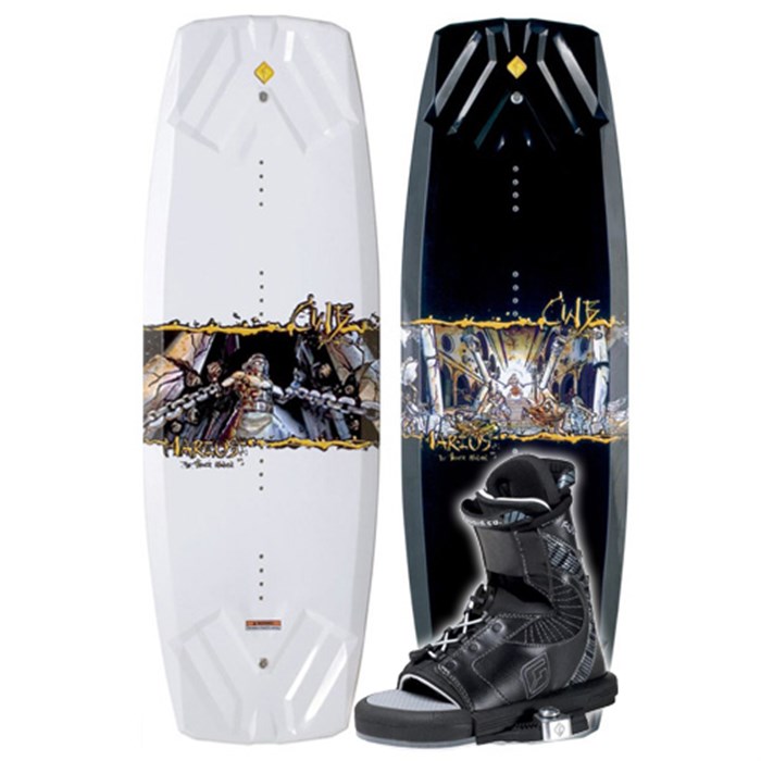 The CWB Marius is the most innovative shape to hit wakeboarding… ever. This board is by far the widest in the industry. To create a super wide board that was fast and nimble was not an easy task. What CWB developed is V-Tech technology. The tip and tail of the board are shaped like a v-bottom boat. The board rocker at the center point is 2" at the corner it is 3". This allows the board to roll from edge to edge extremely fast. The variable rocker pattern means the Marius will build and hold speed better than any board in our fleet. Having a different rocker depth on the edge of the board than the center allows for different snap characteristics off the wake. When you take a hard edge into the wake the deeper rocker pattern will help you scoop up and out. When you coast into the wake for more of an ollie pop approach, the flatter rocker in the center will give you more of a straight up slap utilizing the incredibly wide mid section.