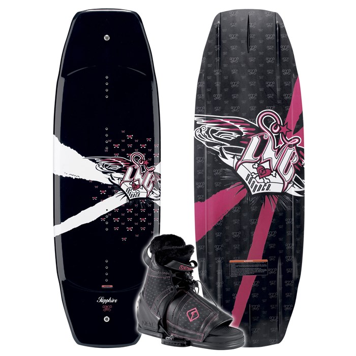 CWB Sapphire Wakeboard + Amber w/Hinge Boot -Attention ladies that rip like the Hoffman sisters! CWB’s Sapphire is back due to high demand, ready to take your riding to new levels. With two long base molded fins, a bolt on fin, a center spine to break up landings in the flats, extra glass for stiffness and pop, a cupped rail for edging, and a trimmed down tip and tail thickness, the Sapphire is ready for big things. Now that isn’t all, CWB is combining the Sapphire Wakeboard with the Amber w/Hinge Boot, the first open toe women´s boot to be graced with the Switch Hinge and the 6 Plate. It handles it well. The Amber boot is designed for that aggressive female who wants a boot that is sized to fit her foot well. Also the Ember brings the lighter weight. Oh,did we mention it has a fur lining? Check out the Amber and feel what real boot innovation feels like (with the fur!) and what it can do to your riding The CWB Sapphire Wakeboard and Amber boot is being called the most aggressive yet user-friendly, Package created for the female rider. So, if you want the best ride designed specifically for a female wake boarder, step onto the Sapphire wakeboard with Amber Boots by CWB.
