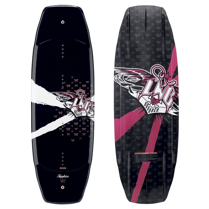 CWB Sapphire Wakeboard - Womens 2008 – Attention ladies that rip like the Hoffman sisters! CWB’s Sapphire is back due to high demand, ready to take your riding to new levels. With two long base molded fins, a bolt on fin, a center spine to break flat landing, extra glass for stiffness and pop, a cupped rail for edging, and a trimmed down tip and tail thickness the Sapphire is ready for big things. It’s being called the most aggressive yet user-friendly wakeboard shape created for the female rider. If you want the best ride designed specifically for a female wakeboarder, step onto the Sapphire wakeboard by CWB and step up your wakeboarding.