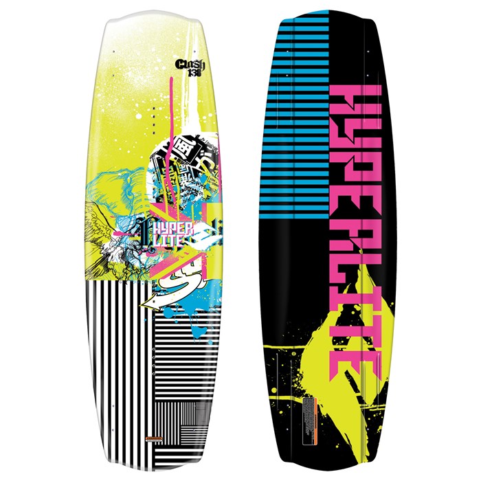 Hyperlite Clash Wakeboard 2010: Inspired by Hyperlite’s Cable Champion Nick Davies, Hyperlite created a board specifically for cable use that crosses over to the wake when desired, introducing the Hyperlite Clash Wakeboard! Shaped with an abrupt continuous rocker and four A-Wing fins, the Hyperlite Clash Wakeboard 2010 is a smooth carver that holds a solid edge. The Clash delivers a great pop off the wake and a light swing weight to help fill your bag of tricks. Hyperlite’s Enduro base and Poly fins hold up to any abuse you can dish out on the kickers and sliders on your local pond.