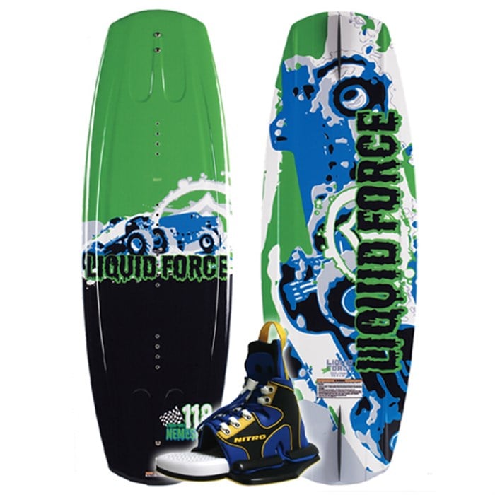 Liquid Force Nemesis Wakeboard Package- Imagine what it must be like having three kids that love to wakeboard… each ripping on wakeboards at different ages and ability levels. The oldest happens to be pro-tour dominator Phillip Soven, while the other two Robert and Jason are progressing closely behind. This incredible Soven Family has helped Liquid Force design the Nemesis series… the only kid’s wakeboard line designed to enhance each rider’s ability as they grow. Combined with the Freemotion Wakeboard Boots that provide support, comfort, ease of use and durability this is a great package. Phillip used this series to make it to the next level. Do your kid’s have what it takes to end his reign? Put them on the Nemesis series and find out.
