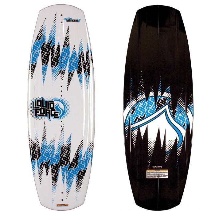 Liquid Force Nemesis Wakeboard features a variable edge rail that is rounded in the center for a forgiving feel then sharp at the tail for edge control and response.