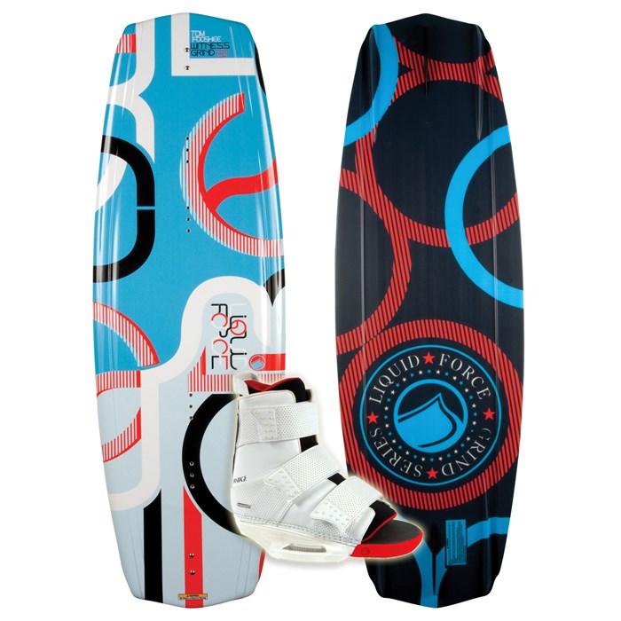The Liquid Force Witness Grind Wakeboard has a DISC hull through center and the LF Exclusive Grind Base that is durable enough to withstand the wear and tear from PVC, Docks, and metal.