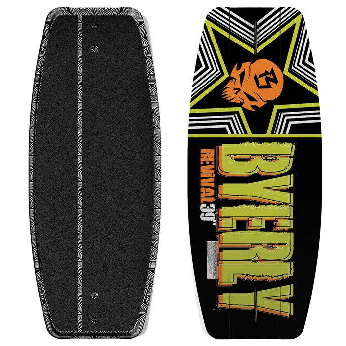 Byerly Wakeboards Revival Wakeskate 2010: Byerly Wakeboards Revival Wakeskate 2010 series is the second generation of True Skate compression molded decks. True Skate concaves are closer to real skate decks than anything available in the market. The Revival’s compression molded construction also makes it stronger and more durable than most wakeskates out there. The new and improved top features run closer to the edges of the skate allowing for better control and foot placement. The Byerly Revival Wakeskate series also features a wider profile for added surface area, creating more pop off the wake. The Revival is the foundation of the Byerly Wakeskate 2010 line.