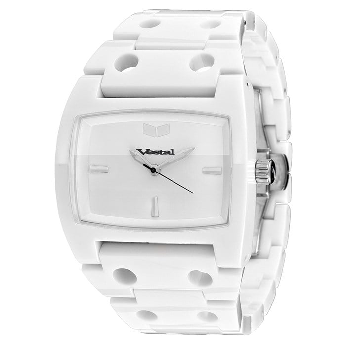 The Vestal Destroyer with a new twist. Lightweight, colorful and fun. Glossy injection molded plastic makes this timeless timepiece a less costly addition to your collection.