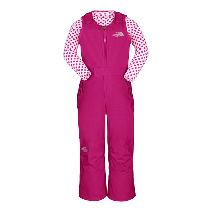 The North Face Insulated Snowdrift Bib Pants - Toddler - Girl's: While playing in the snow and stomping tricks in the mini-park the The North Face® Insulated Snowdrift Bib Pants are the best choice for your little girl with waterproof, breathable, and fully seam sealed to keep girls dry and warm. Reinforced overlay at knees increases durability, and adjustable shoulder straps with Velcro® tabs accommodate growth spurts – as do EZ (easy) grow cuffs at legs that unravel (up to 2”) to extend the life and length of the pant.