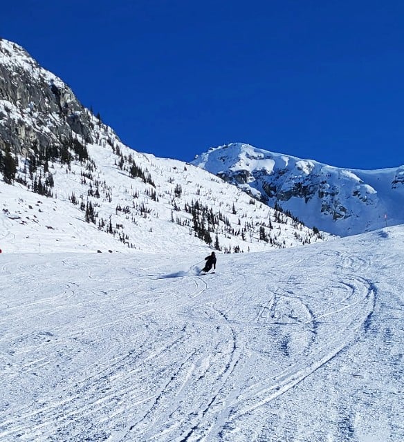 Our annual pre-President’s Day trip to Whistler, BC was bluebird, around 5 degrees F, and well-groomed very hard snow pretty much everywhere. The Montero AR was perfect for these conditions, making confident high-speed carving a joy and smoothing the shocks with Stöckli’s trademark silky ride. I’m not sure what accounts for it (some say it’s the epoxy they use) but there is a qualitative gap between the way this (and other Stöckli skis ride) and just about everything else. Six straight days of groomer zooming only served to confirm that the Montero AR was the right ski for the conditions.