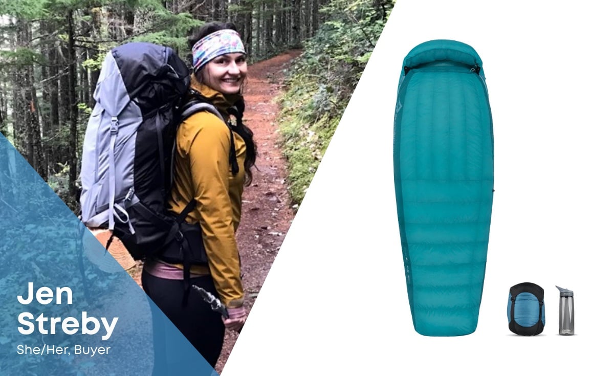 This bag has been a dream to sleep in the last two summers! Perfect for backpacking - warm and light. The fabric itself is insanely comfortable, too. I feel like I’m in a cloud, especially with the cozy hood and draft collar. The half zip on one side makes it nice to stretch out your arms and not get too hot on warmer nights. The color isn’t bad either!