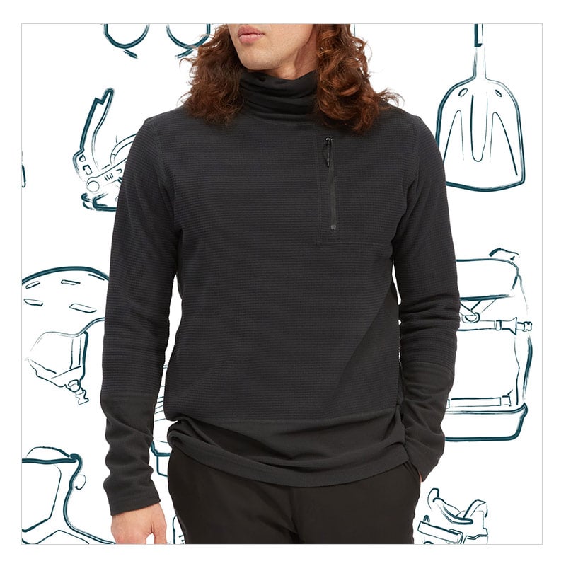 This mid layer is great when we have those colder days. With the integrated balaclava being form fitting it allows you to still wear it under a helmet. I used this product while touring in the backcountry. While skinning up the track, I would take the balaclava off. When it was time to transition, I was able to quickly throw it back on. Having the media pocket on a base layer was also helpful as it kept my phone closer to my body, keeping it warmer. I would recommend this product to people that are looking for a good mid layer with great features to keep them warm while in the resort or in the backcountry.