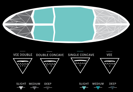 Contours – Vee Nose >> Single Concave to Double Concave Middle >> Vee Double Tail