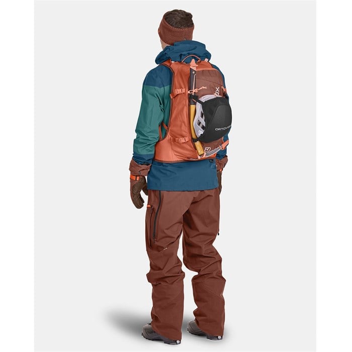 Lightweight, versatile, and ready for freeride and backcountry adventures. The Ortovox Cross Rider 22L Backpack is a convenient day pack for riding side country pow or building backcountry booters with friends. When you just need the essentials, there's a separate shovel and probe compartment that makes safety gear easy to access. And a thermoformed back, ergonomic shoulder straps, and hip belt add comfort on the skin track.