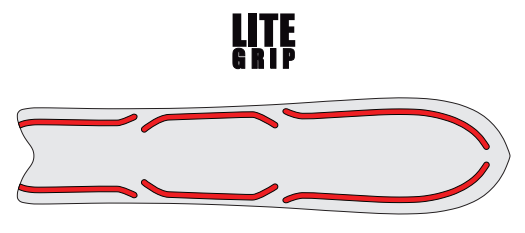RadCut – A traditional sidecut between the inserts fuses with multiple reverse sidecuts toward the tip and tail, providing real time sidecut adjustment to the ride, ie. longer when faster, shorter when slower, and delivering the perfect cut at all times. RadCut is offered in multiple versions, each tailored for individual riding styles. More aggressive sidecut blends deliver quicker, livelier turns, while smoother sidecuts offer a more fluid, relaxed ride.