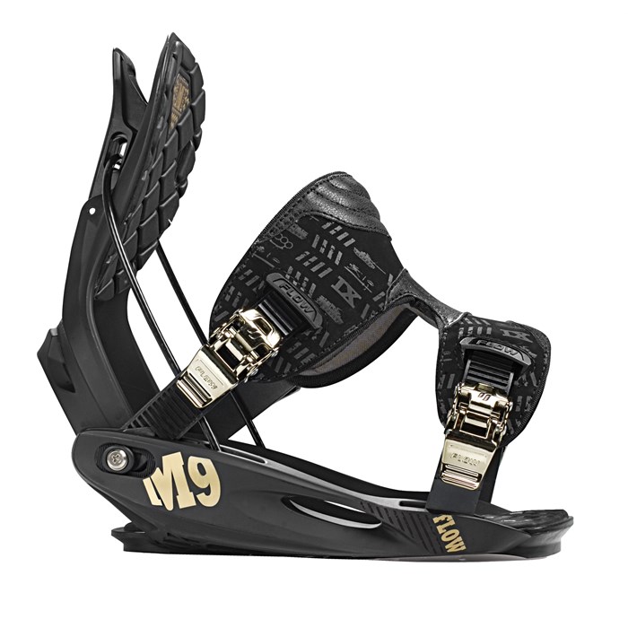 Flow M9 Snowboard Bindings 2010: Season pass holders and certified park rats love the M9 for its lightweight, easygoing shredability. The lightweight Nylon M-series baseplate offers a flexible yet responsive platform, while soft EVA-padding absorbs harsh park landings and high speed chatter. Add the new fiber-reinforced nylon Ventilated highback and the M9 is looking like some serious bang for the buck. The Flow M9 freestyle binding is the perfect choice for abusive park riders and everyday chargers.
