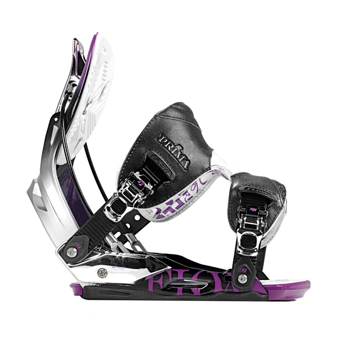 Flow Prima SE Snowboard Bindings - Women's 2010: Class, style, and technology are the three things the Flow Prima SE women’s bindings bring to the table. A forged aluminum rockered baseplate gives you unparalleled response while the adjustable toe and heel landing pads cushion and hard landings. That, along with all of Flow’s extra tech, gives you the ultimate all-mountain binding with trend-forward graphics. The Prima SE is the prime choice for all your fashion and functional needs. Step in to the couture. Step in to the Prima SE.