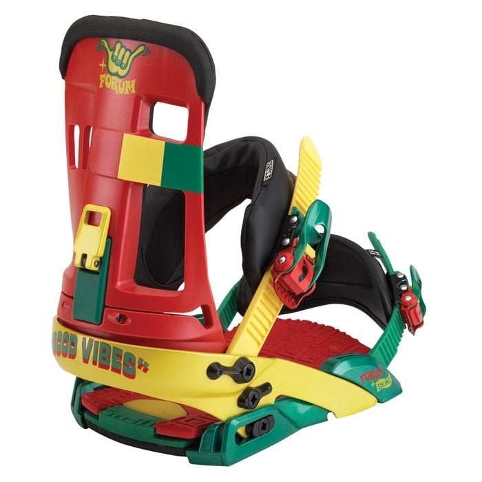 Forum Shaka Snowboard Bindings 2010: Candy and daughter jokes aside, the Forum Shaka rides like a trippy van – it goes with the flow. It’s easy to see how a chill surf session, a bearded guru and too much pakalolo helped Forum techs see the light. Their idea to share the love with a fully-padded freeflex binding for a four-hole pattern was genius and is why bros and brahs can now experience a heightened state of shredness and reach satori in the Shaka.