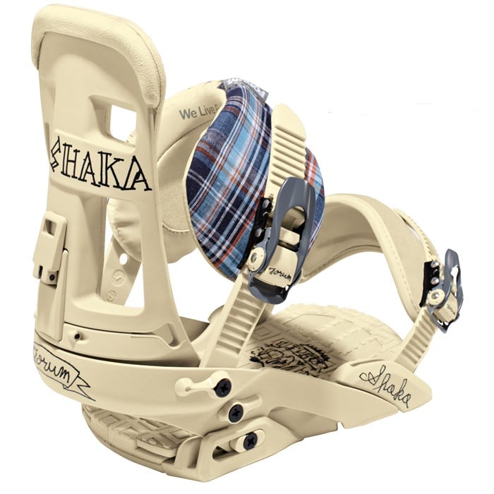 Forum Shaka Snowboard Bindings 2012: Do you ever go to bed thinking about how the perfect snowboard binding would make your riding that much more stellar? Yeah, we only do sometimes but Forum does all the time and that is how they came up with the 2012 Forum Shaka snowboard bindings. The Forum Shaka Snowboard Bindings feature a Good Vibes Hinge Disk that allows the baseplate to flex freely underfoot which is the only way to take advantage of Continuous Rocker. Added FGel in the forefoot improves dampening and ensures that only good vibes gets through and customizable freestyle freedom is offered by the flip flop strap which provides adjustable increased medial/lateral support.