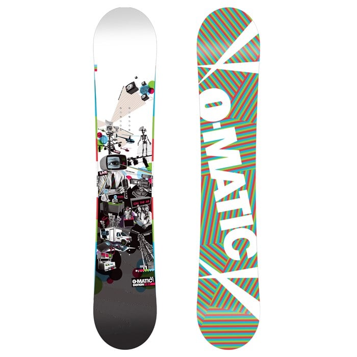 Omatic Boron (Team) Snowboard - Wide 2009: Are you sitting down? Are you at least 4 feet clear of any sharp or heavy objects? Then you are ready for some shocking news. Yes, that’s right, your friend and mine, Television, has been lying to you. Omatic has been toiling away building one of the most versatile snowboards in the game, yet this message is not getting through the mass-media filters. That’s why they have formed the O-matic Network News Channel (or ONNC). Switch to ONNC for 24/7 coverage of the latest Boron truths. Truths such as edge-to-edge reaction advancements, softer landings and superior control on any terrain. All this thanks to Omatic VertWall™ construction and IntelligentCore™ wood profiling. That’s right viewers, no clunky segue-ways or human interest stories here, just all-mountain versatility in a wide snowboard beyond reproach. Omatic reports, you believe!