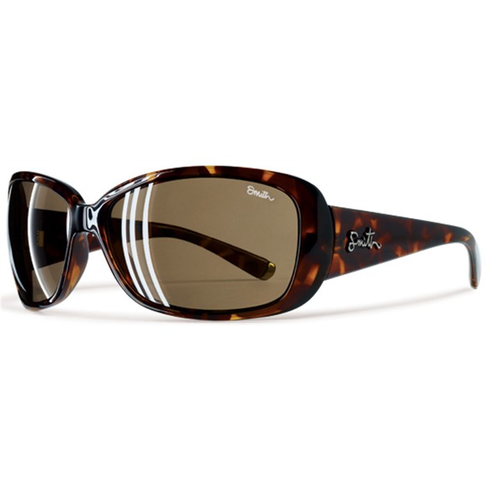 Smith Shoreline Sunglasses: A cat-like silhouette, excellent wrap-styled coverage and fashionable color combinations make the Smith Shoreline Sunglasses uniquely suited for lounging in the bright sun. Dimensional metallic branding plaques plus metallic hits of flair at the temple tips make this style even more deluxe.